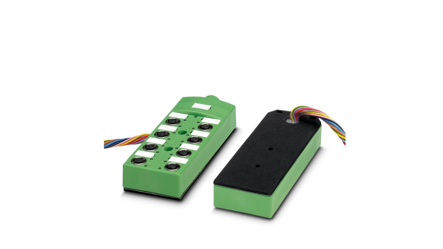 Scatola sensore Phoenix Contact 1197620, 8 porte M8, tensione 30V cc, orientamento diritto, soluzione di collegamento semplice.