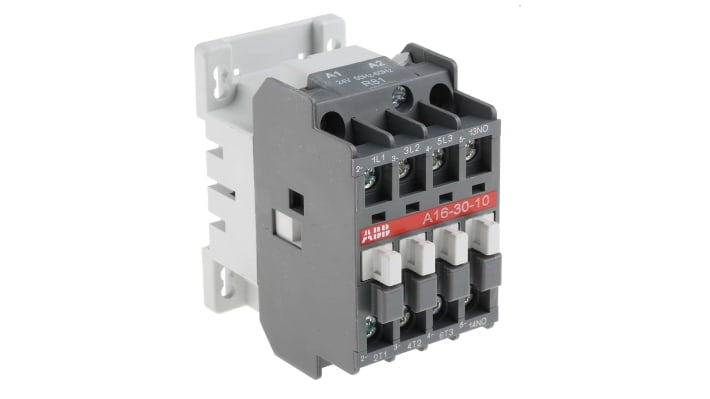 Contattore ABB, serie A Line, 3 poli, 3NO, 30 A, 7,5 kW, bobina 24 V c.a., tensione nominale contatto 690 V c.a., corrente nominale contatto 30 A, 1 contatto ausiliario N/O, montaggio su guida DIN, conforme agli standard IEC947-4-1 e EN60 047-4-1, temperatura operativa da -40 a +55 gradi Celsius, larghezza 44 mm, lunghezza 74 mm, profondità 74 mm, marcatura CE.