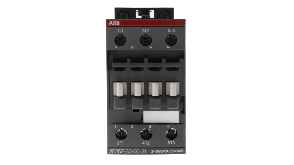 Contattore ABB, 3 poli, 3 NA, corrente nominale 45 A, potenza nominale 11 kW, tensione bobina 24 V ca/cc, tensione nominale contatto 690 V c.a., morsetti a vite, dimensioni 86 mm x 45 mm x 86 mm, temperatura operativa da -40°C a +70°C, frequenza di commutazione elettrica fino a 1200 cicli all'ora, resistente alle vibrazioni fino a 300 Hz. Codice costruttore 1SBL236001R2100.