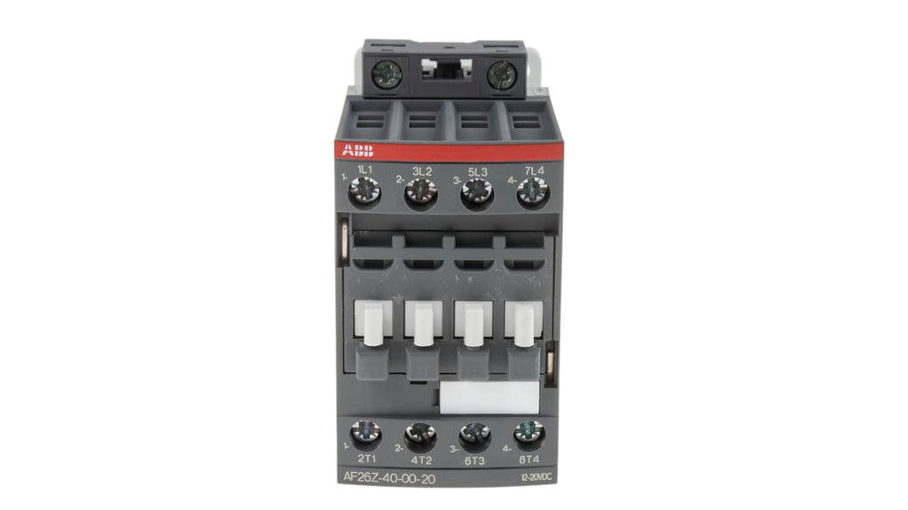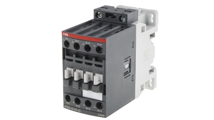 Contattore ABB, serie AF, 4 poli, 4 NA, 45 A, 11 kW, bobina 12 V c.c., tensione nominale contatto 690 V c.a., protezione incorporata contro i transitori, gestione di grandi variazioni della tensione di comando, dimensioni 86 mm x 45 mm x 101 mm, temperatura operativa da -40°C a +70°C, tipo terminale a vite, codice costruttore 1SBL236201R2000 AF26Z-40-00-20.