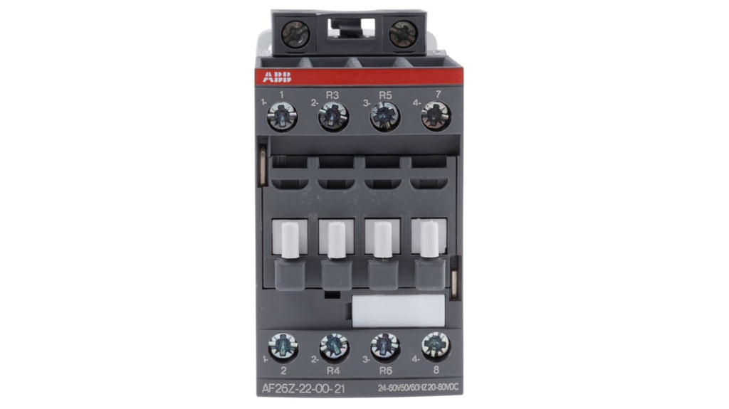 Contattore ABB, serie AF, 4 poli, 2 NO + 2 NC, corrente nominale 45 A, potenza nominale 11 kW, tensione bobina 24 V ca/cc, tensione nominale contatto 690 V c.a., protezione incorporata contro transitori, dimensioni 86 mm x 45 mm x 101 mm, temperatura operativa da -40 a +70 gradi, tipo terminale a vite. Codice costruttore 1SBL236501R2100 AF26Z-22-00-21.