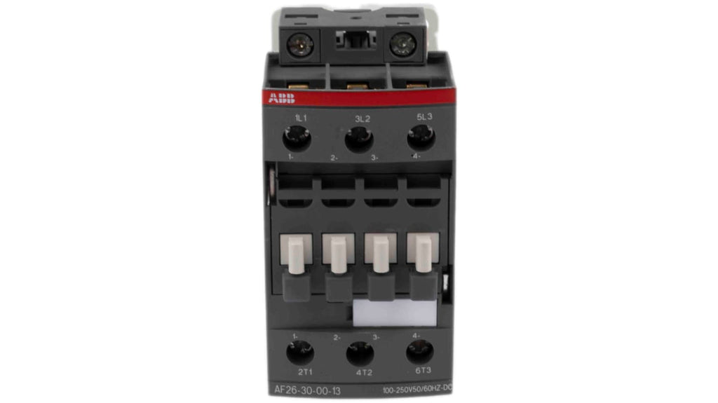 Contattore ABB, serie AF, 3 poli, 3NO, 45 A, 11 kW, bobina 230 V ca, montaggio su guida DIN, capacità conduttore 1,5-10 mm2, tensione nominale contatto 690 V ac, commutazione fino a 1200 volte/ora, dimensioni 45 x 86 x 86 mm, temperatura operativa -40 a +70 °C, terminali a vite di sicurezza, protezione contro sovratensioni integrata. Codice costruttore 1SBL237001R1300.