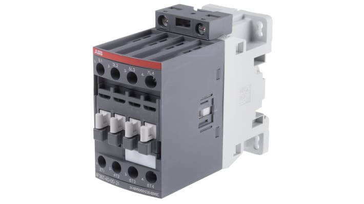 Contattore ABB, serie AF, 4 poli, 4 NA, 55 A, 18,5 kW, bobina 24 V ca/cc. Tensione nominale contatto 690 V c.a., protezione incorporata contro i transitori, gestione di grandi variazioni della tensione di comando. Dimensioni 45 mm x 86 mm x 101 mm, temperatura operativa da -40 a +70 gradi. Tipo terminale a vite, codice costruttore 1SBL296201R2100 AF38Z-40-00-21.