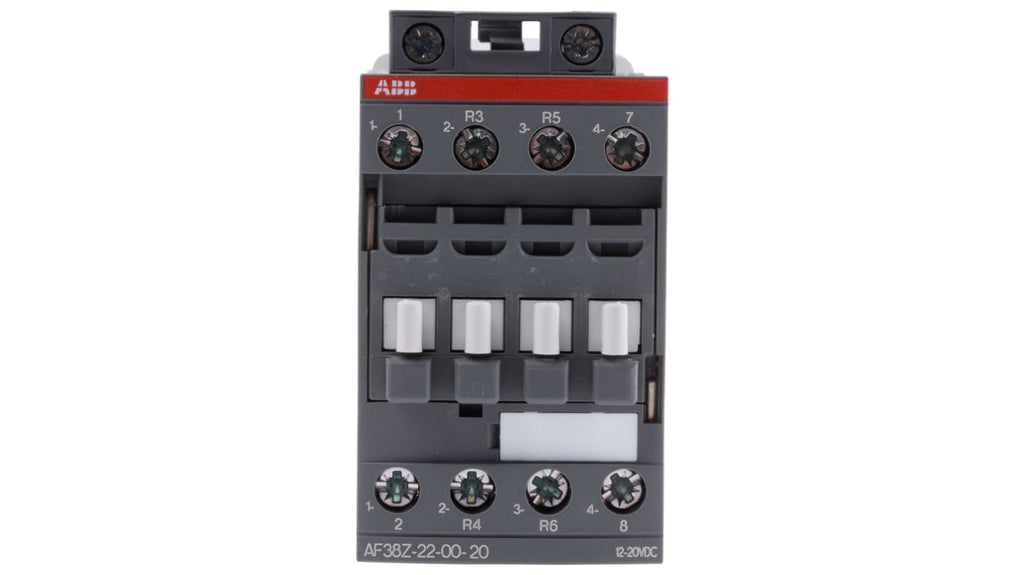 Contattore ABB, serie AF, 4 poli, 2 NO + 2 NC, 55 A, 18,5 kW, bobina 12 V c.c., tensione nominale contatto 690 V c.a., protezione incorporata contro i transitori, gestione di grandi variazioni della tensione di comando, dimensioni 86 mm x 45 mm x 101 mm, temperatura operativa da -40 a +70 gradi Celsius, tipo terminale a vite, codice costruttore 1SBL296501R2000 AF38Z-22-00.