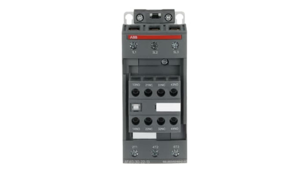 Contattore per controllo motori ABB, serie AF, 3 poli, 3 contatti normalmente aperti, corrente nominale 70 A, potenza nominale 18,5 kW, tensione bobina 250 V, grado di protezione IP20, temperatura operativa da -60 a +80 gradi, frequenza di commutazione meccanica massima 3600 cicli all'ora, morsetti a vite, resistenza alle vibrazioni. Codice costruttore 1SBL347001R1322 AF40-30-22-13.