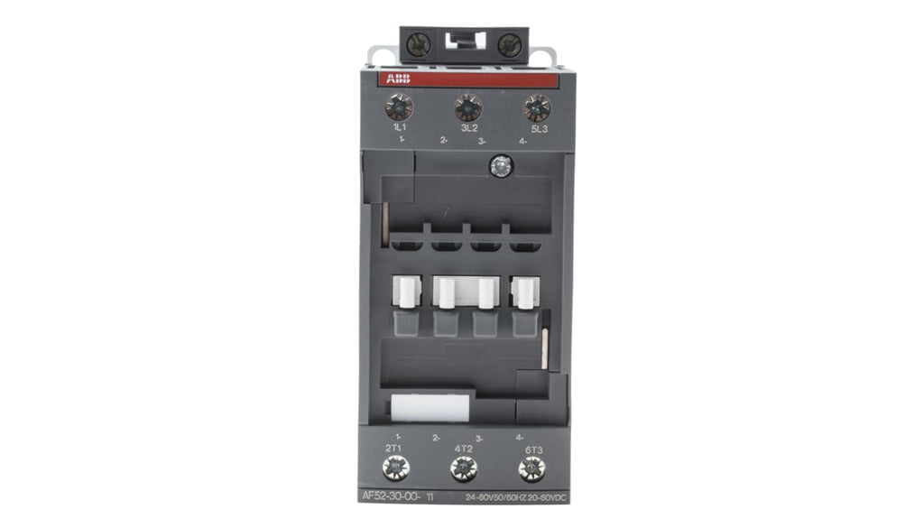 Contattore ABB, 3 poli, 3 NA, potenza nominale 22 kW, corrente nominale 100 A, tensione nominale contatto 690 V c.a., bobina 24 V ca/cc, terminali a vite, dimensioni 55 mm x 125.5 mm x 111 mm, temperatura operativa da -40 °C a +70 °C, codice costruttore 1SBL367001R1100 AF52-30-00-11.