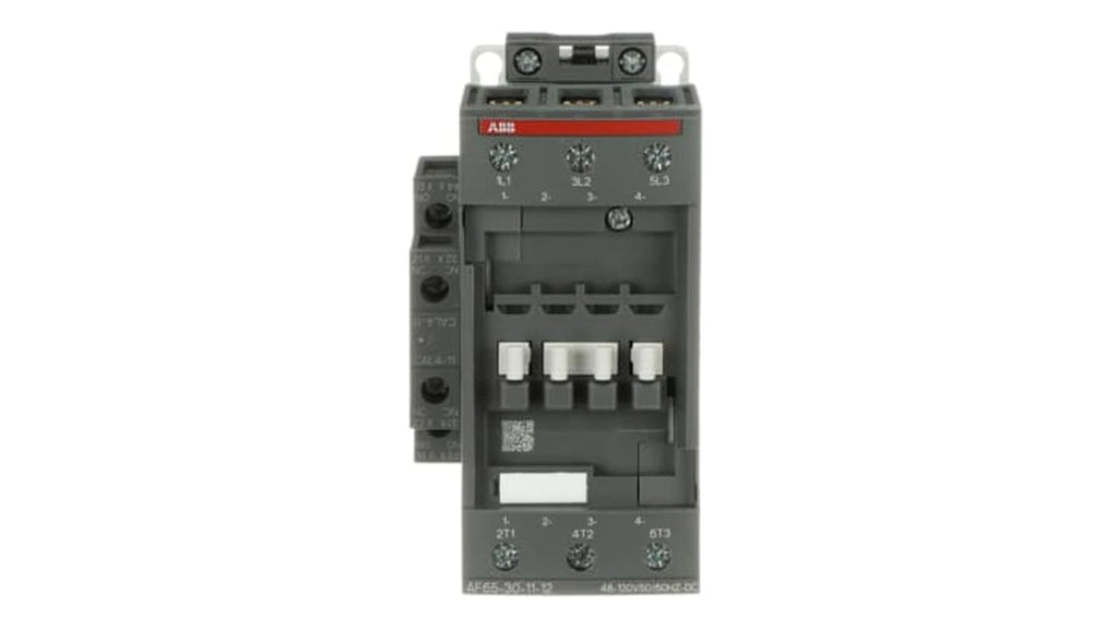 Contattore per controllo motori ABB, 3 poli, 3 contatti normalmente aperti, corrente nominale 105 A, potenza nominale 30 kW, tensione bobina 130 V, grado di protezione IP20, temperatura operativa da -60 a +80 gradi, frequenza di commutazione meccanica massima 3600 cicli all'ora, tecnologia AF per gestione tensione variabile, morsetti a vite. Codice costruttore 1SBL387001R1211.