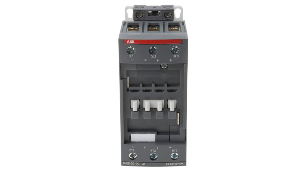 Contattore ABB, serie AF, 3 poli, 3 NA, 105 A, 30 kW, bobina 24-60 V c.a., tensione nominale contatto 690 V c.a., protezione sovratensione integrata, standard IEC 60947-1/60947-4-7, dimensioni 125.5 mm x 55 mm x 111 mm, temperatura operativa da -40°C a +70°C, tipo terminale a vite. Codice costruttore 1SBL387001R4100 AF65-30-00-41.