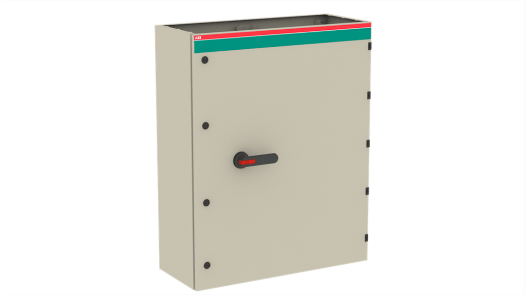 Sezionatore con interruttore ABB, 3 poli, corrente nominale 570 A, montaggio a vite, grado di protezione IP54, potenza nominale 315 kW, configurazione stato normale NO, serie OT, impugnatura nera, lamiera d'acciaio. Codice costruttore 1SCA022280R3170.