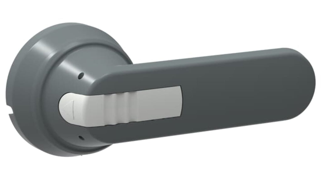 Manopola rotante bloccabile ABB con tre lucchetti in posizione OFF, interblocco porta in posizione ON, fissaggio a vite posteriore, doppio isolamento, grado di protezione IP65, dimensioni 158 x 45 x 66 mm, codice costruttore 1SCA022399R7990.