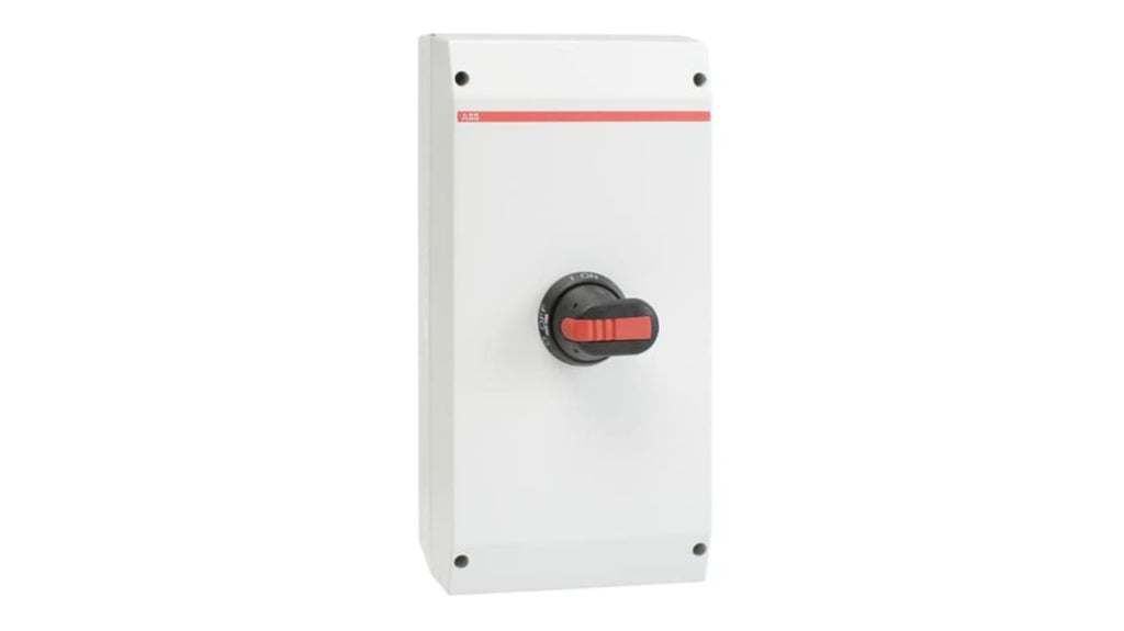 Sezionatore con interruttore, ABB, serie OTP, 6 poli, corrente massima 125A, tensione nominale 750 V, potenza nominale 45 kW, contatti ausiliari 2NA, 2NC, montaggio a vite, grado di protezione IP65, contenitore in policarbonato rinforzato con fibra di vetro, bloccabile con lucchetto, ingressi cavo filettati, configurazione per 5 fili, numero modello 1SCA022401R6700.
