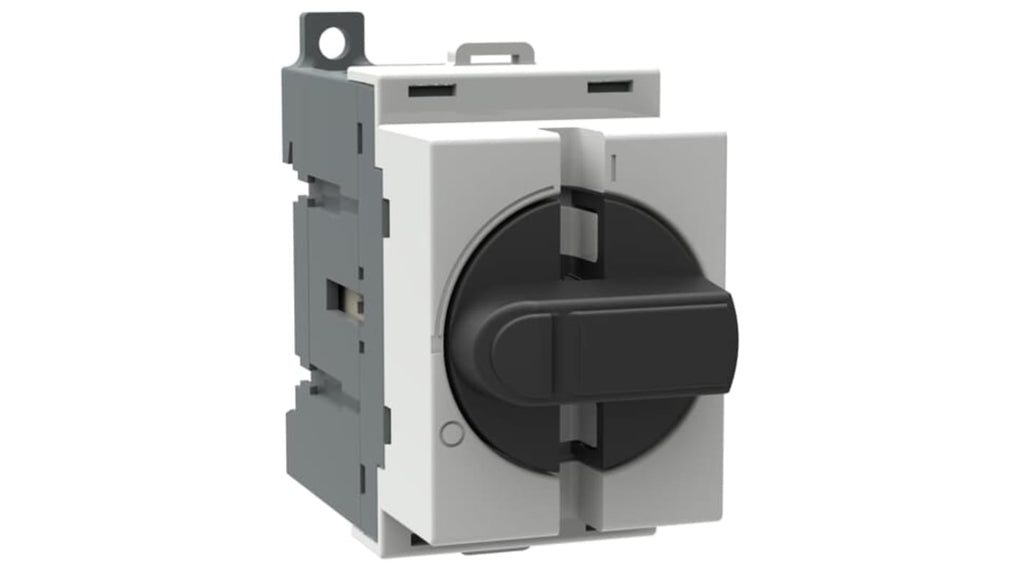 Interruttore di isolamento ABB, 3 poli, corrente massima 25A, serie 1SCA0. Contenitore in acciaio galvanizzato, protezione IP65, impugnatura a pistola nera bloccabile per 3 lucchetti, coperchio bloccato. Adatto per uso esterno, resistenza ai raggi UV, funzione di rilascio della pressione del gas. Predisposto per cavi singoli e paralleli, ingressi cavo configurabili.