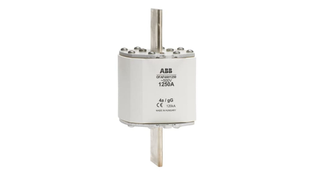 Fusibile con linguette ABB gG HRC, corrente nominale 1.25kA, dimensioni 200 x 89 x 119mm, tensione nominale 500V, standard CE, progettato per protezione da sovracorrente e cortocircuito, collegamento fusibile di tipo DIN, perdita di potenza 90 W, adatto per semiconduttori e apparecchiature. Codice costruttore 1SCA022637R4360.