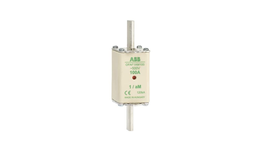 Fusibile con linguette ABB aM HRC, 16A, dimensioni 135 x 30 x 65mm, tensione nominale 500V, standard CE, progettato per ambienti industriali impegnativi, utilizzato per la protezione di applicazioni generiche e motori, collegamento fusibile di tipo DIN, funzionamento continuo. Codice costruttore 1SCA022697R6330.