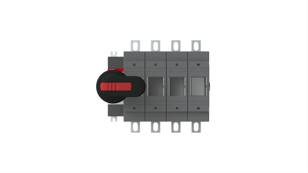 Sezionatore portafusibili ABB, 4 poli, fusibile B1-B2, corrente nominale 200A, tensione nominale 500V, dotato di fusibili interruttore ad azionamento frontale, impugnatura e albero inclusi, collegamenti solidi, progettato per condizioni estreme, facile installazione, conforme agli standard inglesi.