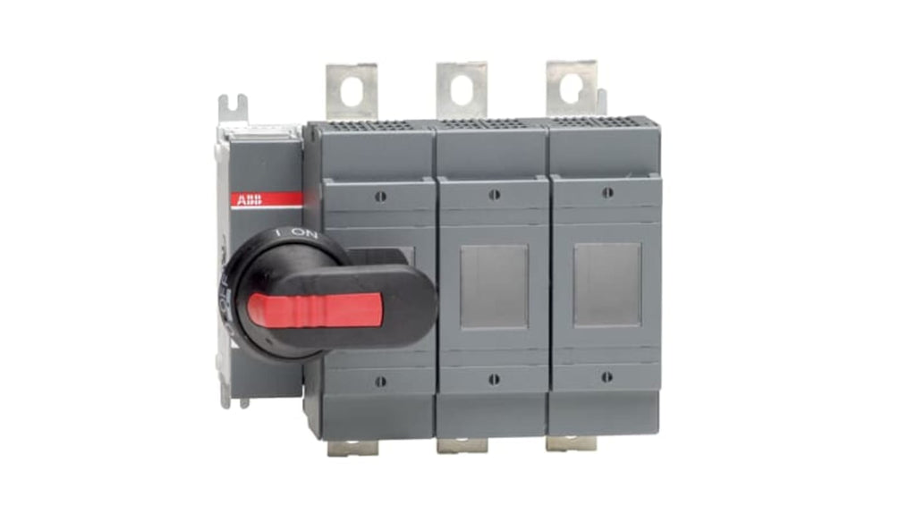 Sezionatore portafusibili ABB, 3 poli, fusibile 250A, dimensione fusibile 0,1, tensione nominale 500V, azionamento frontale, impugnatura e albero inclusi, progettato per condizioni estreme, facile installazione, sicurezza e protezione elevate. Codice costruttore 1SCA022719R0090 OS250D03P.
