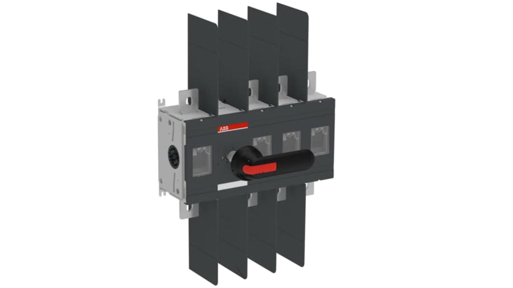 Sezionatore con interruttore ABB, 4 poli, corrente massima 800A, tensione nominale 1000V, montaggio a vite, protezione IP00 e IP65, configurazione stato normale NO, manico e albero inclusi, terminali di linea Top in - Bottom out e Bottom in - Top out, grado di inquinamento 3, colore maniglia nero, potenza nominale 800kW, serie OT, numero modello 1SCA022753R7970.