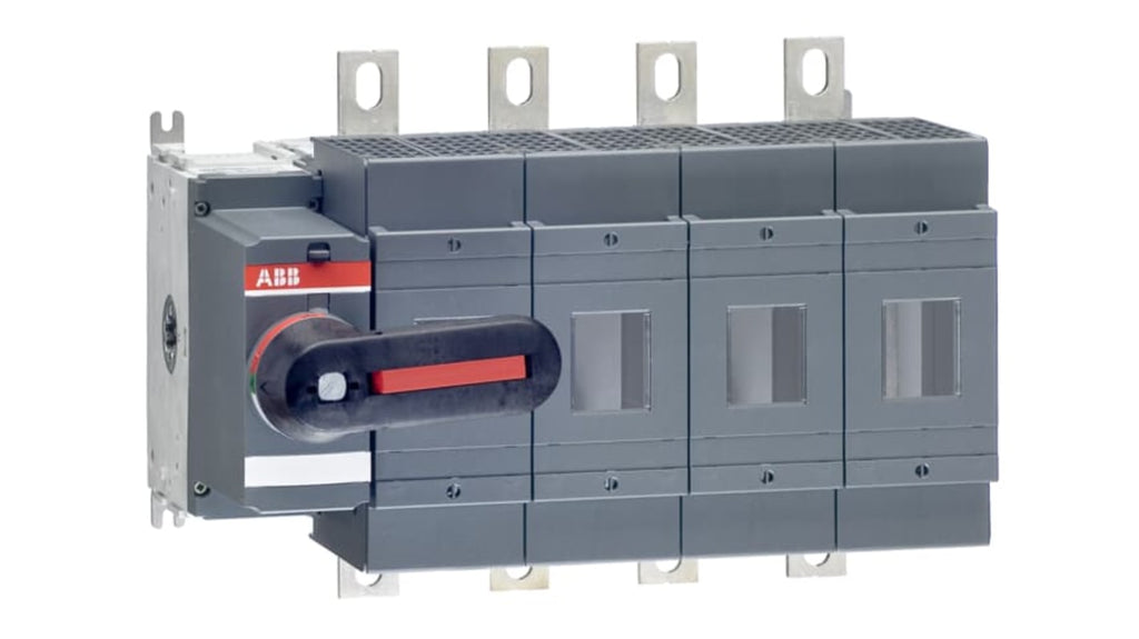 Sezionatore portafusibili ABB, 2 poli, corrente nominale 400A, tensione nominale 500V, fusibile dimensione B1-B4, montaggio su base con 4 poli, azionamento frontale, maniglia a montaggio diretto, terminali a linguetta 25 mm, posizione terminali Top in - Bottom out, Bottom in - Top out, tipo a quarto polo commutato con collegamento solido. Codice costruttore 1SCA022763R6870.