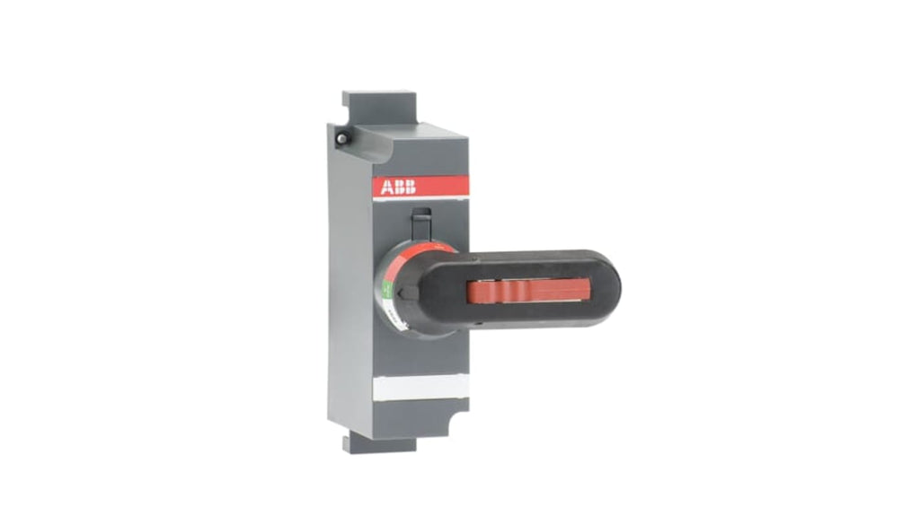 Manopola rotante per applicazioni industriali, compatibile con la serie OS di ABB, colore grigio, lunghezza 100 mm, larghezza 50 mm, altezza 50 mm, montaggio diretto, adatta per centri di controllo motori e interruttori di scollegamento. Codice costruttore 1SCA022779R7530 S/APP. OSV200BK.