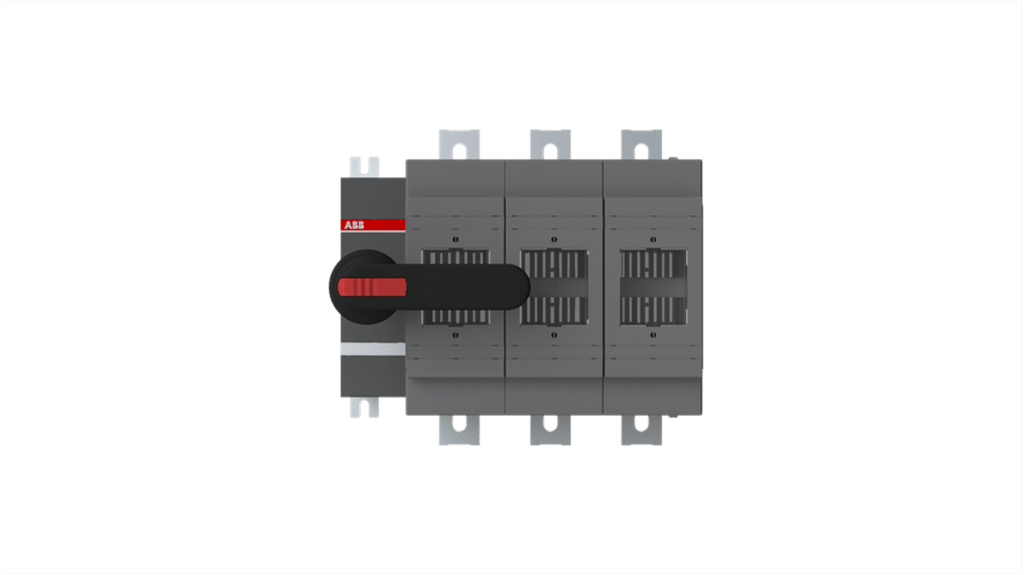 Sezionatore portafusibili ABB, 3 poli, fusibile C1-C2, corrente nominale 630A, tensione nominale 500V, dotato di fusibili interruttore ad azionamento frontale, impugnatura e albero inclusi, progettato per condizioni estreme, facile da installare, conforme agli standard inglesi C1-C3.