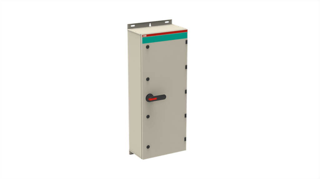 Sezionatore con interruttore ABB, 4 poli, corrente massima 720A, montaggio a vite, protezione IP65, potenza nominale 400kW, configurazione stato normale NO, contenitore in lamiera d'acciaio galvanizzato con rivestimento in poliestere, adatto per uso all'aperto, funzione di scarico della pressione del gas incorporata, impugnatura a pistola di colore nero. Modello 1SCA022830R4570.