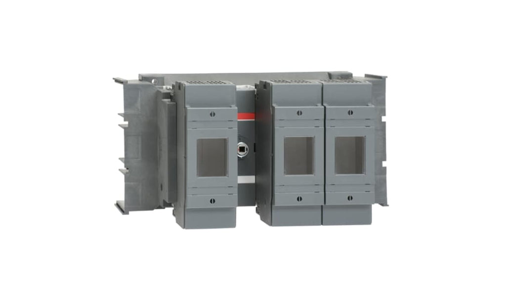 Sezionatore portafusibili ABB, 3 poli, corrente nominale 250A, tensione nominale 500V, dimensione fusibile B1-B3, grado di inquinamento 3, impugnatura a pistola e albero inclusi, terminali a linguetta 25 mm, posizione terminali linea sinistra in ingresso e destra in uscita, commutazione meccanismo di azionamento 12 tra i poli. Codice costruttore 1SCA022854R5690.