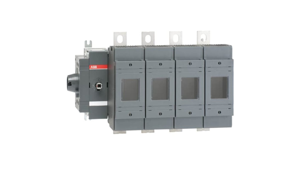 Sezionatore portafusibili ABB, 4 poli, corrente massima 250A, fusibile NH0, NH1, perdita di potenza 23 W per polo in condizioni nominali, montaggio su base, morsetti a occhiello, integrato, serie 1SCA02.