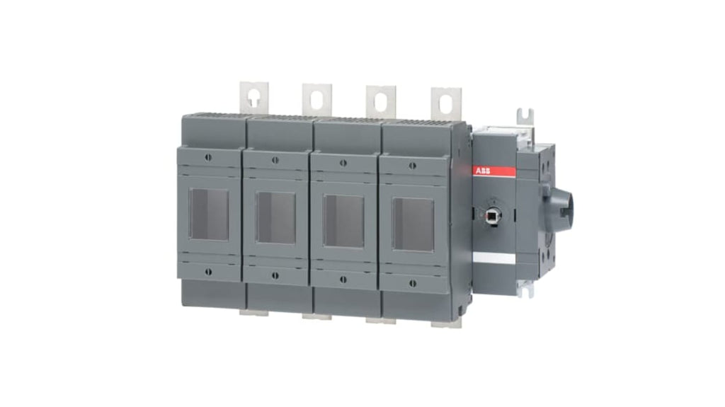 Sezionatore portafusibili ABB, 4 poli, fusibile 0-1, corrente nominale 250A, tensione nominale 500V, azionamento laterale, sistema di fusibili DIN, terminali a linguetta 25 mm, grado di inquinamento 3, quarta posizione polo lato destro, tipo a quarto polo commutato con collegamento solido, interruttori meccanismo di azionamento 40, impugnatura e albero non inclusi.