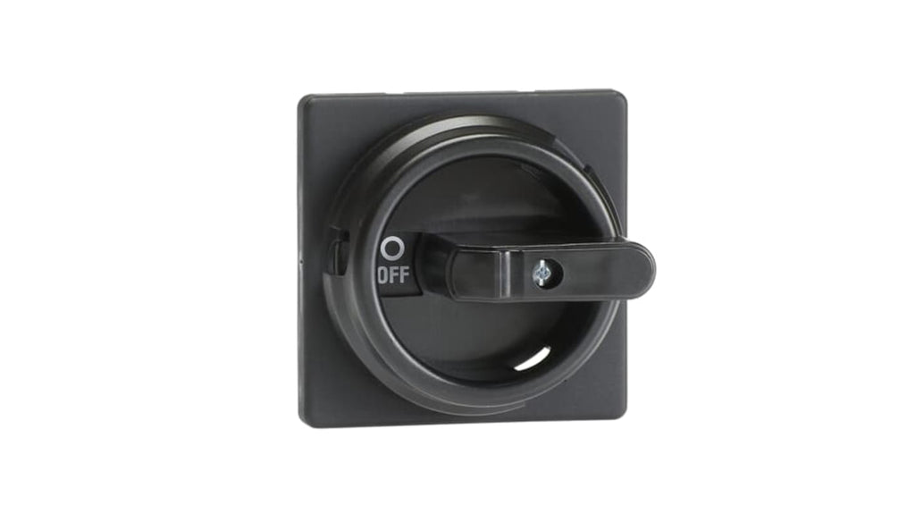 Manopola rotante per sezionatore serie OT, compatibile con albero da 6 mm, colore nero, grado di protezione IP65. Prodotto da ABB, codice costruttore 1SCA100702R1001. Adatta per applicazioni industriali, garantisce resistenza e affidabilità in ambienti critici.