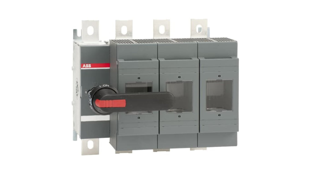 Sezionatore portafusibili ABB, 4 poli, corrente massima 630A, fusibile NH3, potenza di perdita 60 W per polo, collegamento neutro rimovibile integrato, montaggio su base, terminali a occhiello, serie 1SCA10. Codice costruttore 1SCA100858R1001.