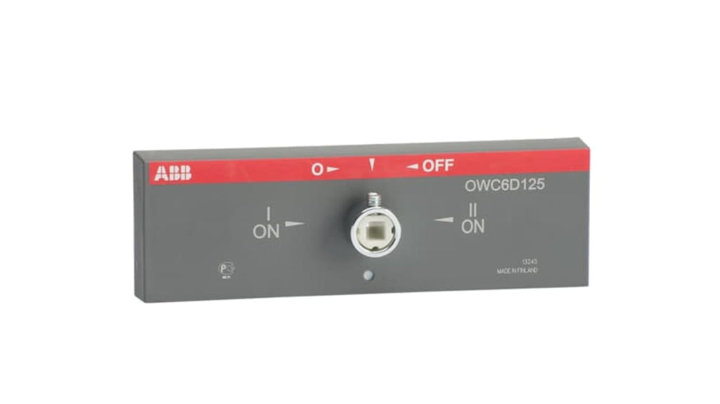 Sezionatore con interruttore ABB, corrente massima 125A, 4 poli, meccanismo di commutazione con due interruttori in posizioni I-O-II, dimensioni 45 x 12 x 140 mm, serie 1SCA10, codice costruttore 1SCA104494R1001.