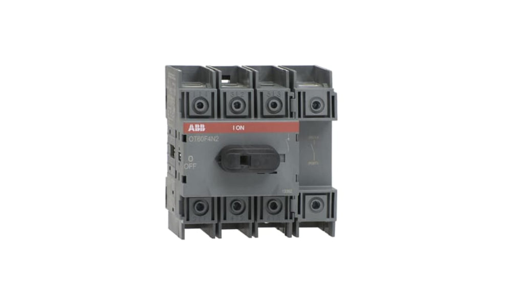 Sezionatore con interruttore, 4 poli, corrente massima 63A, montaggio superficiale, grado di protezione IP20, potenza nominale 37kW, configurazione stato normale NO, serie OT, codice costruttore 1SCA108348R1001, marchio ABB. Adatto per macchinari, distribuzione dell'alimentazione, quadri di controllo, centri di controllo motori, impianti fotovoltaici. Elevate prestazioni, soluzione compatta, affidabile in condizioni estreme.