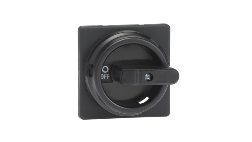 Manopola rotante per sezionatori, impugnatura bloccabile a pad, montaggio centrale, accoppiamento porta in posizione ON senza bypass, grado di protezione IP65, adatta per albero da 6 mm, lunghezza 56 mm, serie 1SCA11. Codice costruttore 1SCA111684R1001, marchio ABB.