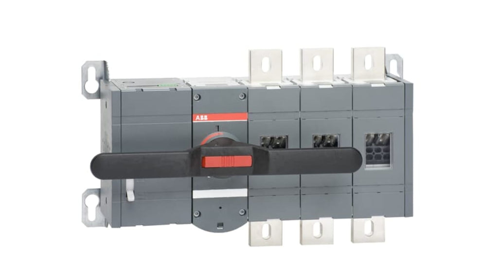 Sezionatore con interruttore a 3 poli, corrente massima 1250A, montaggio a vite, protezione IP00, potenza nominale 1200kW, configurazione stato normale NO. Include kit di bulloni terminali, clip per fusibile di ricambio, maniglia nera per funzionamento manuale, maniglia a montaggio diretto. Modello 1SCA115365R1001, serie OTM.