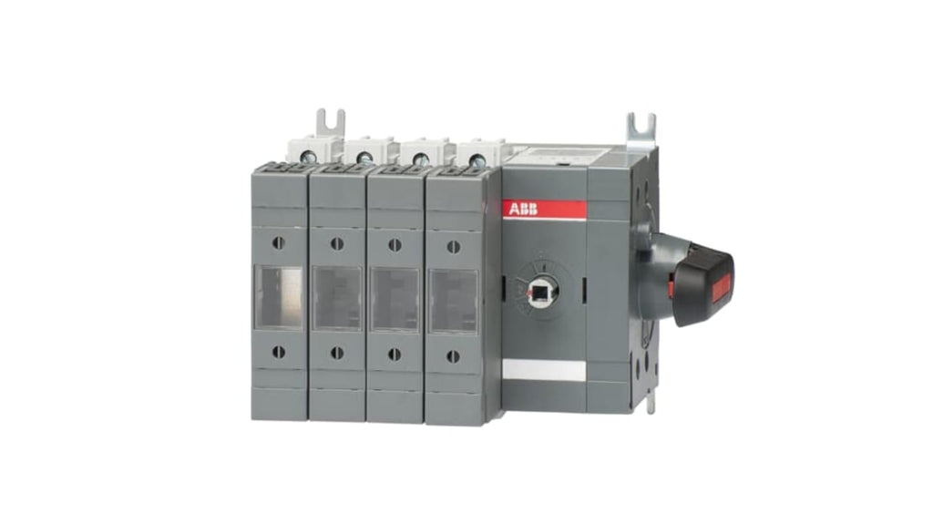 Sezionatore portafusibili ABB, 4 poli, corrente nominale fusibile 63A, tensione nominale 500V, fusibile A2-A3, azionamento laterale, maniglia a montaggio diretto inclusa, morsetti a vite con coppia di serraggio 3 N.m e 4 N.m, grado di inquinamento 3, quarto polo commutato con collegamento solido, interruttori meccanismo di azionamento 40 lato destro.