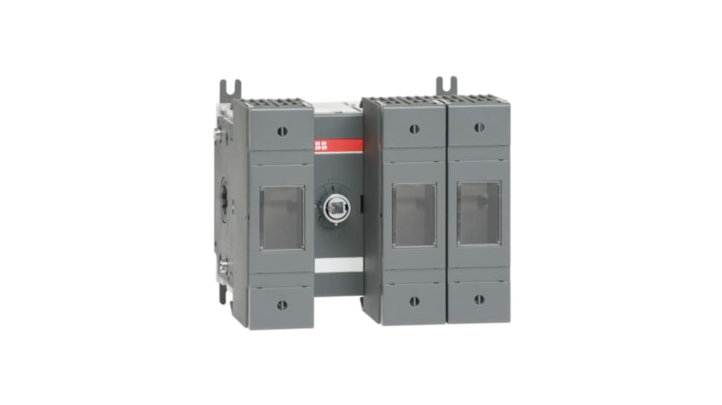 Sezionatore portafusibili ABB, 3 poli, fusibile A2-A4, montaggio su base, azionamento anteriore, corrente nominale fusibile 160A, tensione nominale 500V.