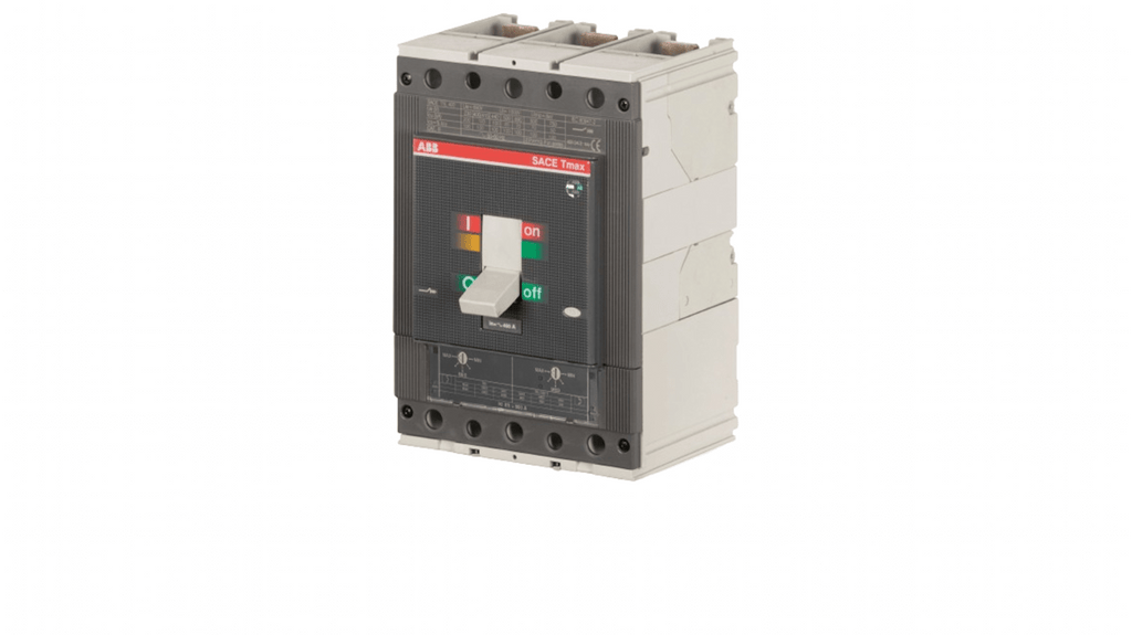 Interruttore automatico con contenitore stampato MCCB, 400A, 690V, montaggio fisso, tre poli, tecnologia di rilascio termomagnetico, capacità di rottura 70 kA, dimensioni 103.5mm x 140mm x 205mm, codice costruttore 1SDA054437R1 T5N400 FF TMA 400A, marchio ABB. Adatto per impianti industriali e commerciali.