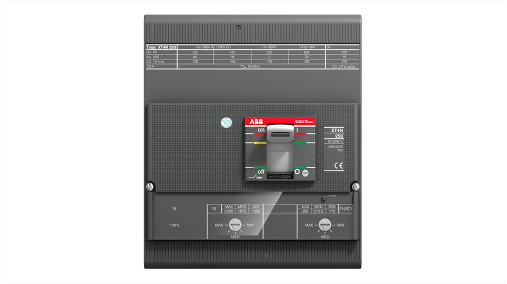 Interruttore magnetotermico scatolato, 4 poli, corrente nominale 63 A, tensione nominale 690 V, tensione nominale sopportata agli impulsi 8 kV, tipo di rilascio termomagnetico, montaggio fisso, frequenza nominale 50/60 Hz, custodia sagomata ABB Tmax XT4S, codice costruttore 1SDA068319R1 XT4S 160 TMA 63A FF.