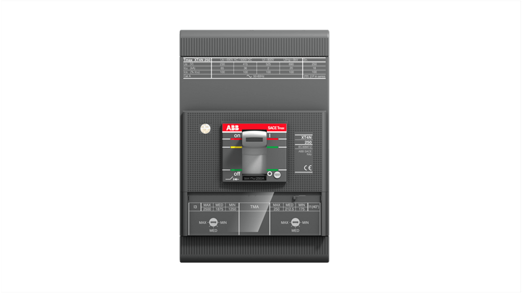 Interruttore magnetotermico scatolato a 3 poli, corrente nominale 25 A, tensione nominale 690 V, rilascio termomagnetico, montaggio fisso, livello di prestazioni contro i cortocircuiti L, codice costruttore 1SDA068367R1 XT4L 160 TMD 25A FF, marchio ABB.