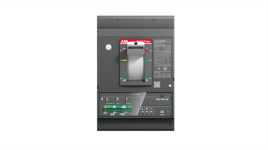 Interruttore automatico con contenitore stampato, corrente nominale 630 A, 3 poli, montaggio fisso, eccellenti proprietà di isolamento, elevata capacità di corto circuito, resistenza agli urti e alle vibrazioni, funzione di connettività integrata. Marchio ABB, codice costruttore 1SDA100425R1 XT5S 630.