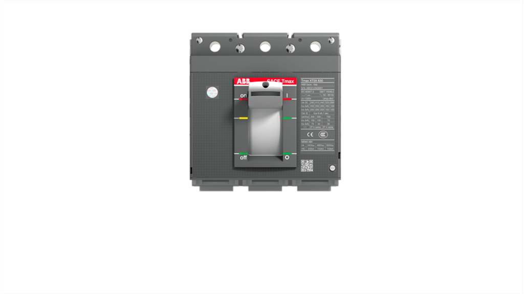 Interruttore magnetotermico scatolato a 3 poli, corrente nominale ininterrotta 400 A, capacità di interruzione 6 kA, tensione di isolamento nominale 1000 V, durata elettrica 120 cicli all'ora, montaggio fisso, conforme allo standard IEC 60947, modello ABB XT5N.