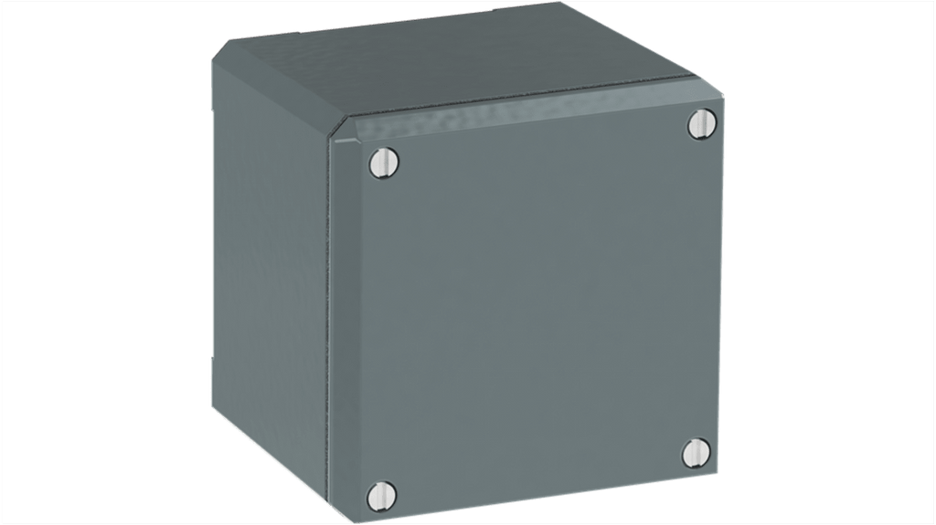 Scatola per pulsante ABB, realizzata in alluminio, dimensioni 87 x 87 x 75 mm, colore grigio, senza perforazioni, per 1 foro, priva di ingresso per il cavo, grado di protezione IP66, serie Modular Metal.