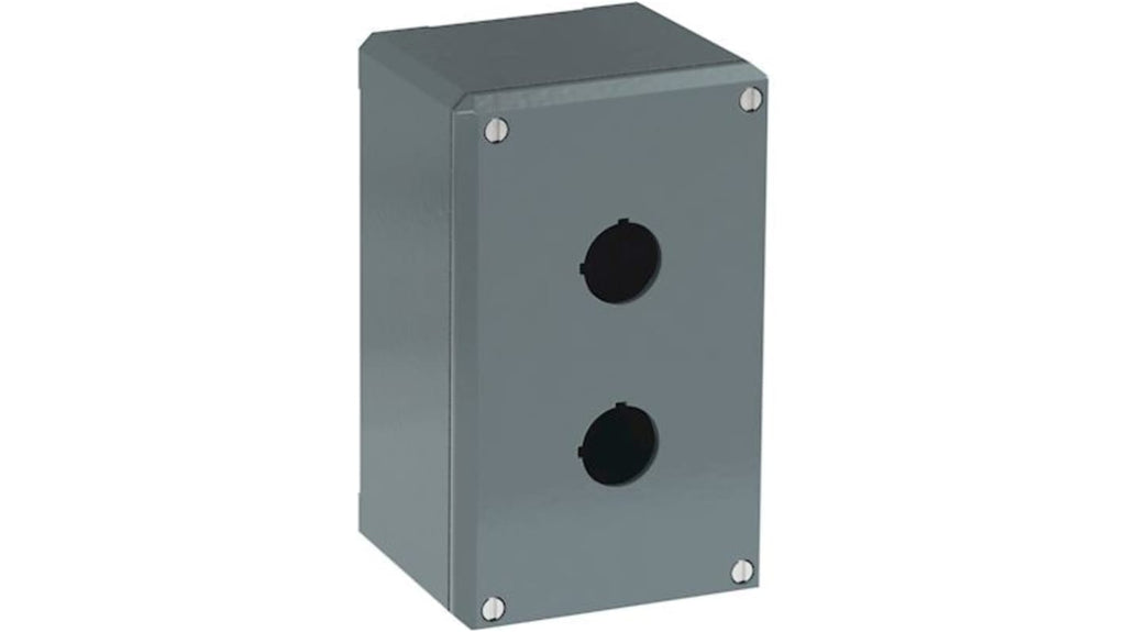 Scatola per pulsante ABB, realizzata in alluminio, dimensioni 145 x 87 x 75 mm, colore grigio, senza perforazioni, indicata per 2 fori, grado di protezione IP66, con ingresso per cavo. Specifiche: Serie, Modular Metal, Colore contenitore, Grigio, Materiale contenitore, Alluminio.