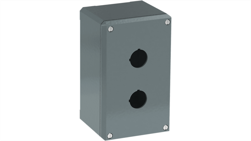 Scatola per pulsante ABB a 2 fori, realizzata in alluminio, dimensioni 145 x 87 x 75 mm, colore grigio, grado di protezione IP66, priva di ingresso per il cavo. Specifiche: Serie Modular Metal, numero di fori 2, materiale contenitore alluminio, colore contenitore grigio.