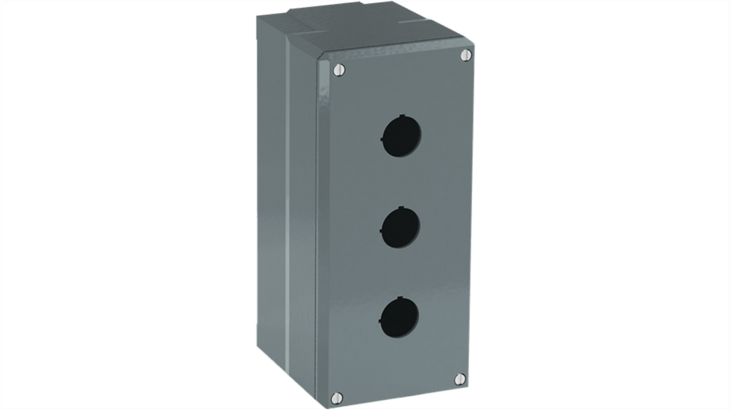 Scatola per pulsante ABB, 3 fori, realizzata in alluminio, dimensioni 195 x 100 x 87 mm, colore grigio, grado di protezione IP66, priva di ingresso per il cavo. Specifiche: Serie Modular Metal, numero di fori 3, materiale contenitore alluminio.
