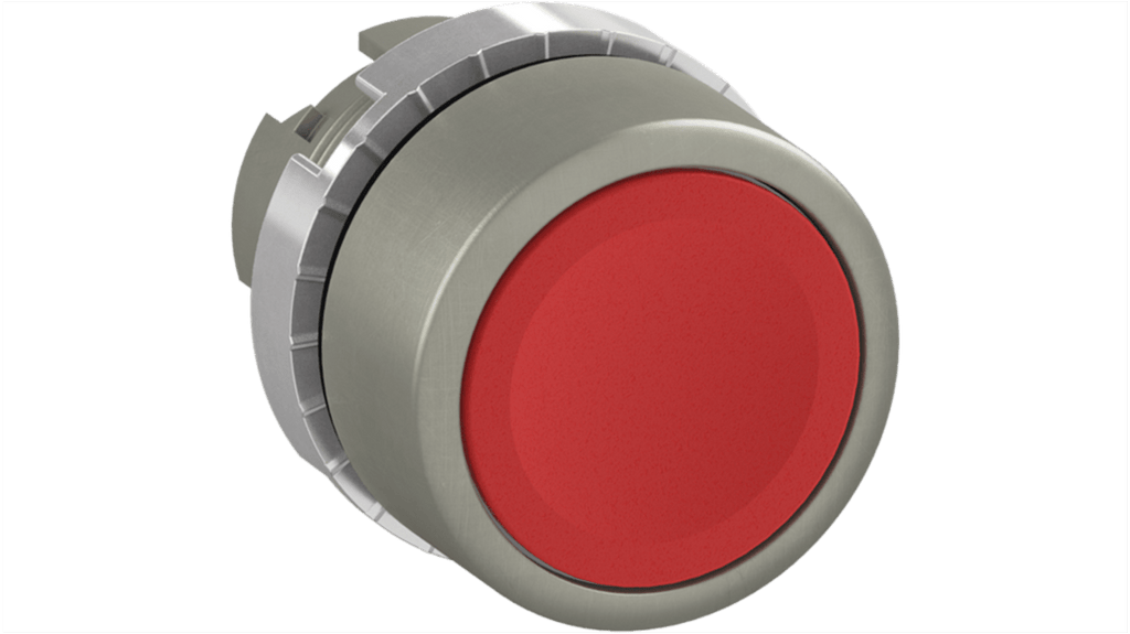 Pulsante a fungo instabile, attuatore a filo, colore rosso, forma rotonda, grado di protezione IP66 sul lato anteriore. Prodotto della serie 1SFA1, marchio ABB.