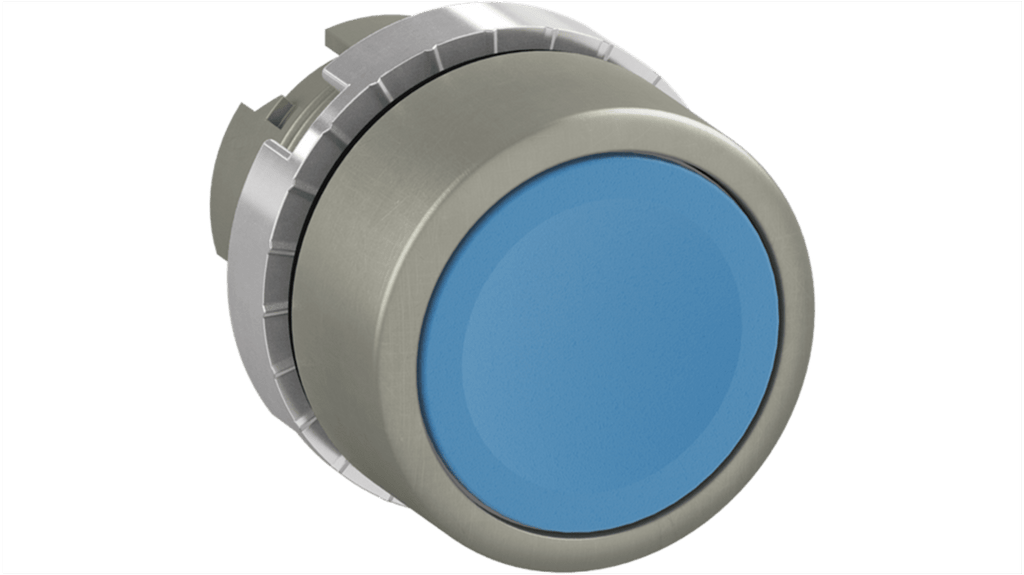 Pulsante a fungo instabile, attuatore a filo, colore blu, forma rotonda, grado di protezione IP66 sul lato anteriore. Prodotto della serie 1SFA1, marchio ABB.