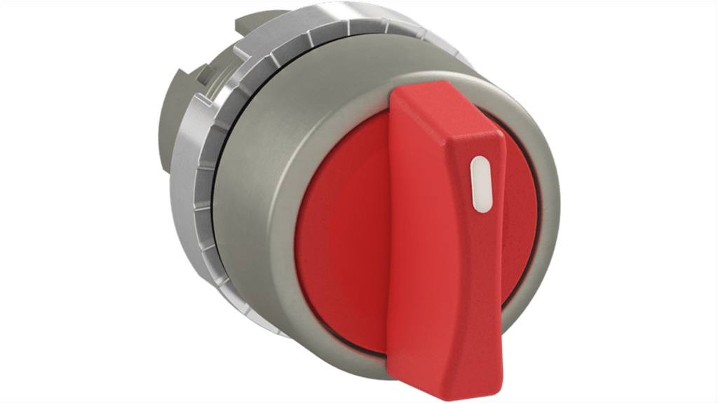 Pulsante a fungo mantenuto, colore rosso, attuatore con impugnatura corta, grado di protezione IP66 sul lato anteriore, forma rotonda con manopola, serie 1SFA1.
