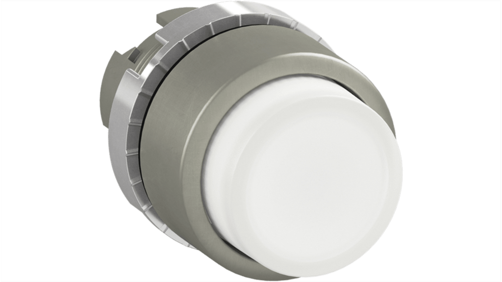 Pulsante tipo Instabile a fungo, attuatore esteso, colore bianco, grado di protezione IP66 sul lato anteriore, forma rotonda, serie 1SFA1, attuazione momentanea. Marchio ABB, codice costruttore 1SFA184507R9105.