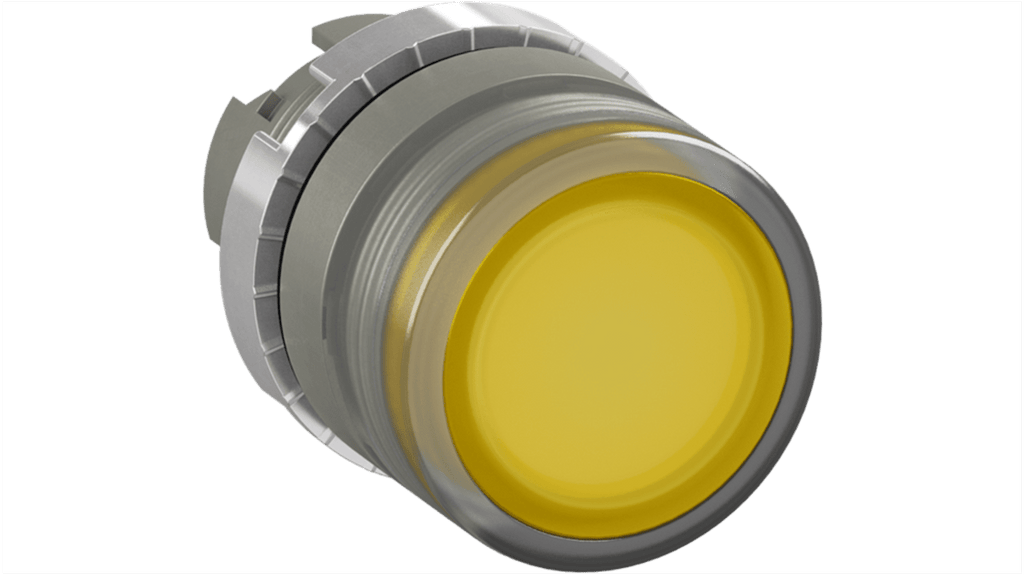 Pulsante a fungo instabile, attuatore a filo, colore giallo, forma rotonda, grado di protezione IP66 sul lato anteriore. Prodotto della serie 1SFA1, marchio ABB. Adatto per applicazioni industriali che richiedono un comando momentaneo.